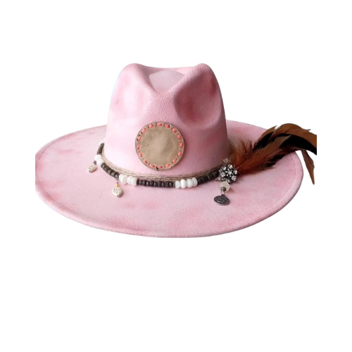 Playful yet elegant, this charming pink hat is a celebration of fantasy and style. Handcrafted with delicate feathers and sparkling embellishments, it brings a touch of magic to any look. Perfect for those who embrace fun with a dash of sophistication.